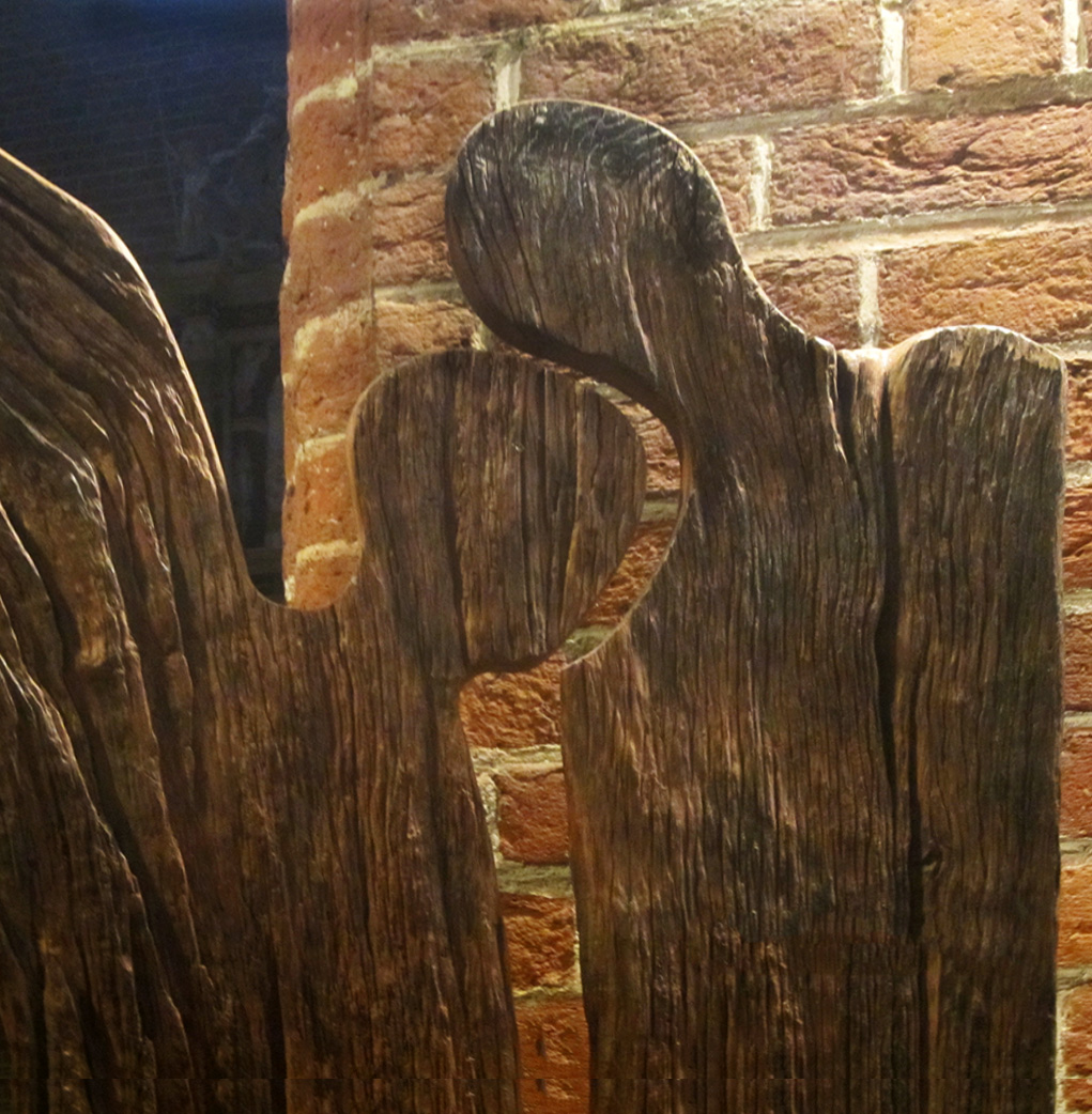 Dann wird die Form der linken Skulptur als Engelsgestalt erkennbar,